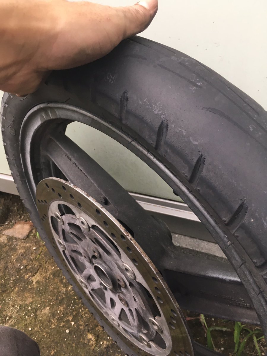 しかし、古いタイヤはツルツルでヤバ〜( ̄▽ ̄;)