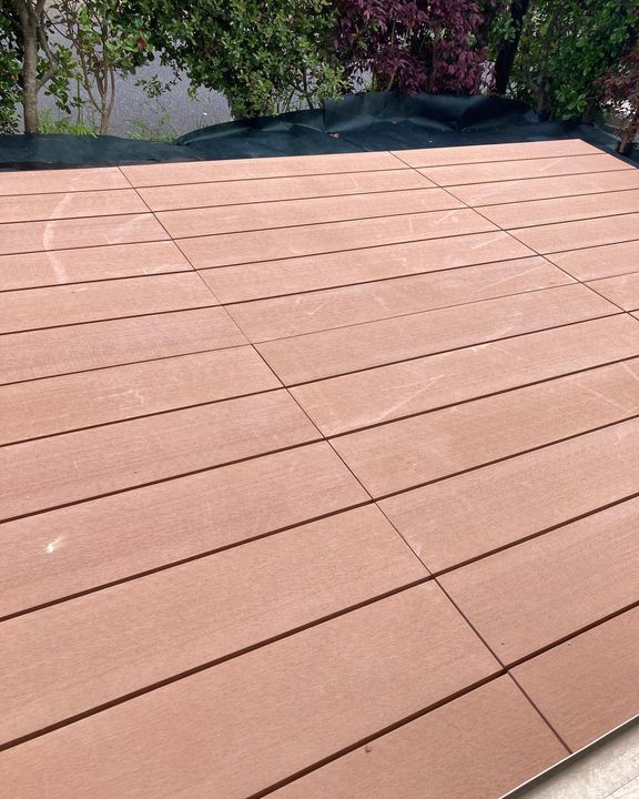 庭掃除とウッドデッキ