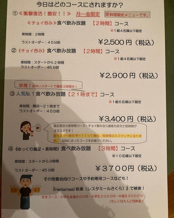 衝撃食べ飲み放題2時間コース復活です❗️ 料理メニューは限定になりますが2500円税込❗️ 月〜金曜日限定でまずはネット予約限定からスタート❗️